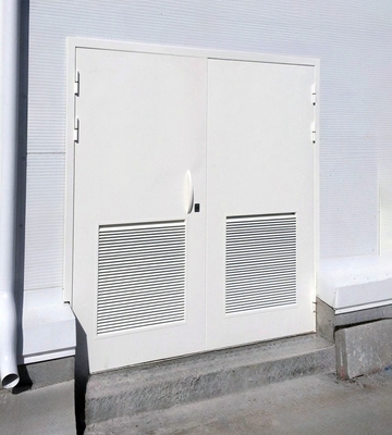 Ворота распашные (3,0 мм+1,4 мм рекомендовано при размерах более 3*3 м) противопожарные Ei60 / технические двупольные равнопольные: короб закрытого типа усиленный из сложно гнутого профиля из стали З мм, с / без порога, короб угловой с наличником по 50 мм / торцевой / разборный (при необходимости делаем по умолчанию). Полотна коробчатого типа (типа «СЭНДВИЧ») из стали 1,4 мм с наполнением базальтовой плитой 60-80 мм и усилением по периметру профилем, петли капли 160*25 мм по З шт. на полотно. Замок «Страж» с черной ручкой на планке на рабочей створке, не рабочая створка на шпингалетах (при необходимости ставим гаражные задвижки по умолчанию). Уплотнение по периметру (Е+Д), термолента (если Ei60). Ral стандарт шагрень, открывание только наружу.